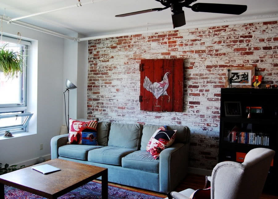 Варианты оформления разным комнат с кирпичной стеной