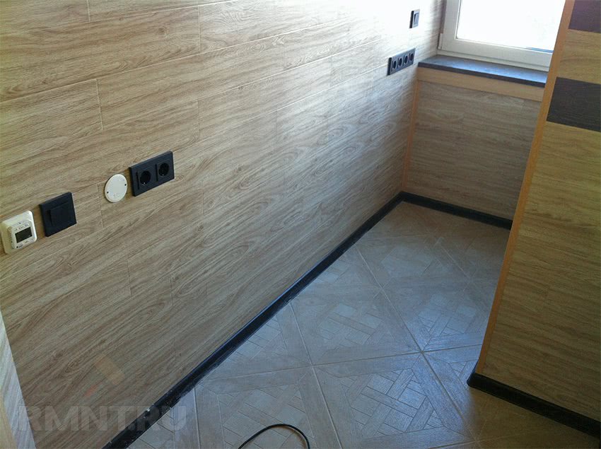 Боковые части, как правило, закрываются клиньями, а по низу укладывается плинтус. Некоторые специалисты советуют использовать сбоку резиновый порожек, подобранный идеально в цвет.