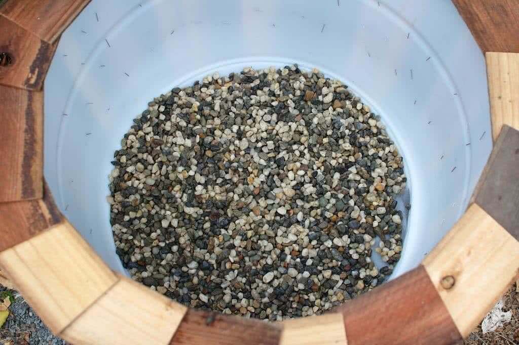 После высыхания на слой песка можно выкладывать камни начиная с самых крупных, затем щебень или гальку. В нижнем слое рекомендуется оставить несколько отверстий, чтобы обеспечить вентиляцию. Пустоты заполнять раствором цемента лучше изнутри, чтобы сооружение не потеряло эстетичный внешний вид;
