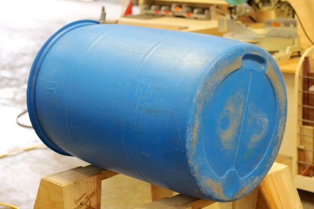 Для изготовления понадобится пластиковый бочонок. Его нужно разрезать.