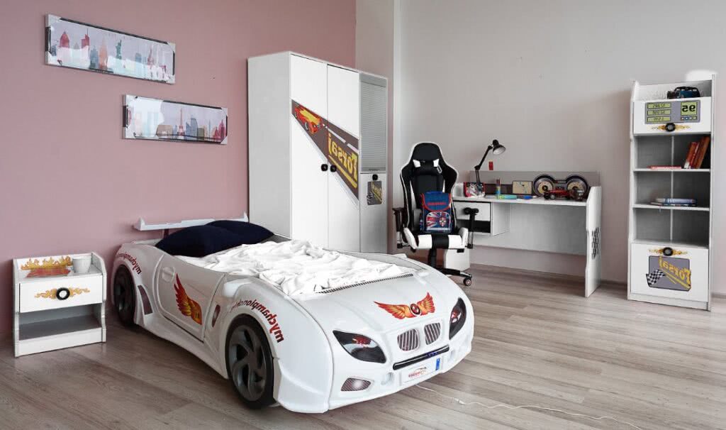 Хорошее решение, которое вписывается в любые детские комнаты и позволяет использовать необычную мебель. Это могут быть кровати, стилизованные под машины или другой транспорт, яркие элементы обстановки и многое другое. Помнить следующее: