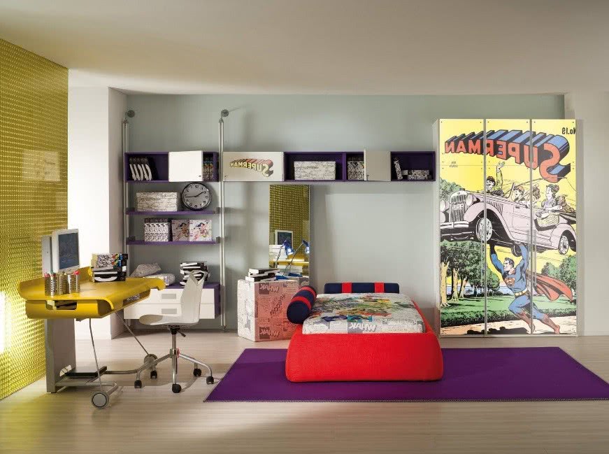 Если вашему сыну нравятся комиксы, оформите стены в его комнате в соответствующем стиле. Но не стоит украшать стены слишком пестрыми постерами: яркие цвета в большом количестве негативно действуют на детскую психику.