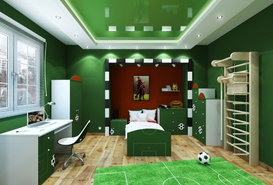 Почти все мальчики занимаются спортом. У них есть свои кумиры среди профессиональных спортсменов, поэтому интерьер детской в спортивном стиле наверняка понравится вашему ребенку.
