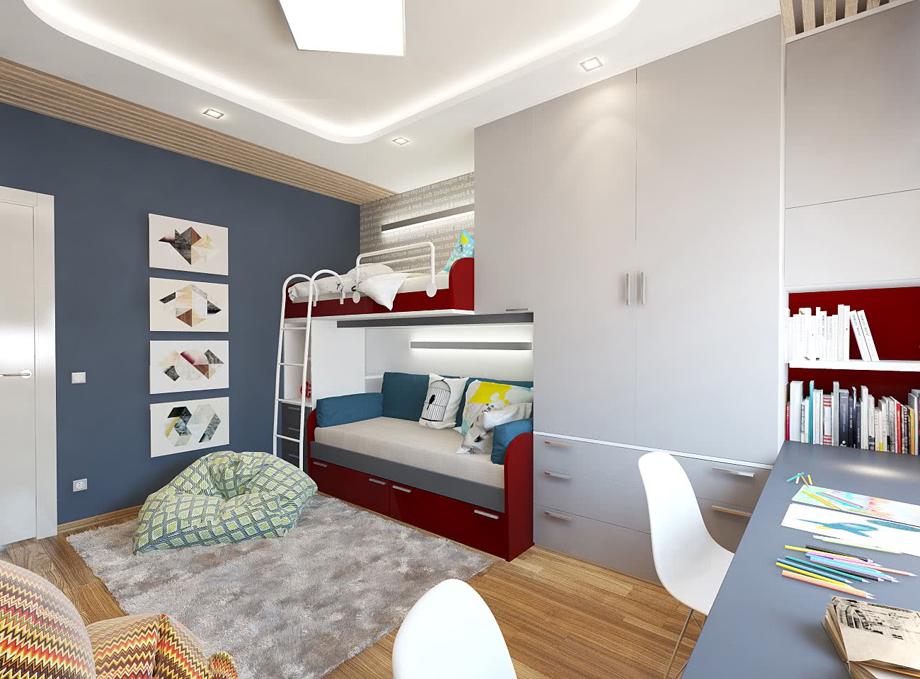Необходимо понимать, что дизайн детской для двух мальчиков малышей, школьников и подростков имеет множество отличий