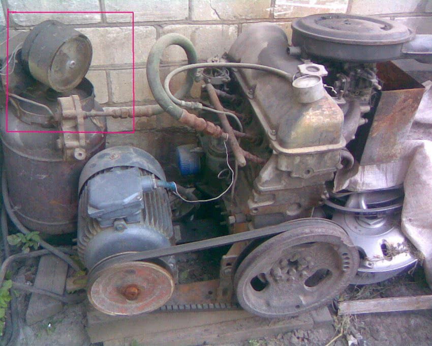 Его основа — отслуживший свой срок двухтактный двигатель внутреннего сгорания типа Д-6 или Д-8 от легкого мопеда «Рига-11» или «Рига-13». С двигателя снимают карбюратор, выхлопной патрубок, а также электрооборудование — высоковольтный трансформатор, маховик магнето и плату прерывателя