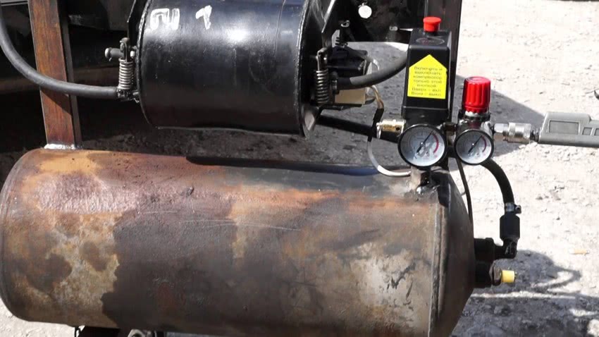 Если под рукой есть ресивер от КрАЗ, можно получить агрегат с минимальными трудовыми затратами: в нём уже вкручены все патрубки.