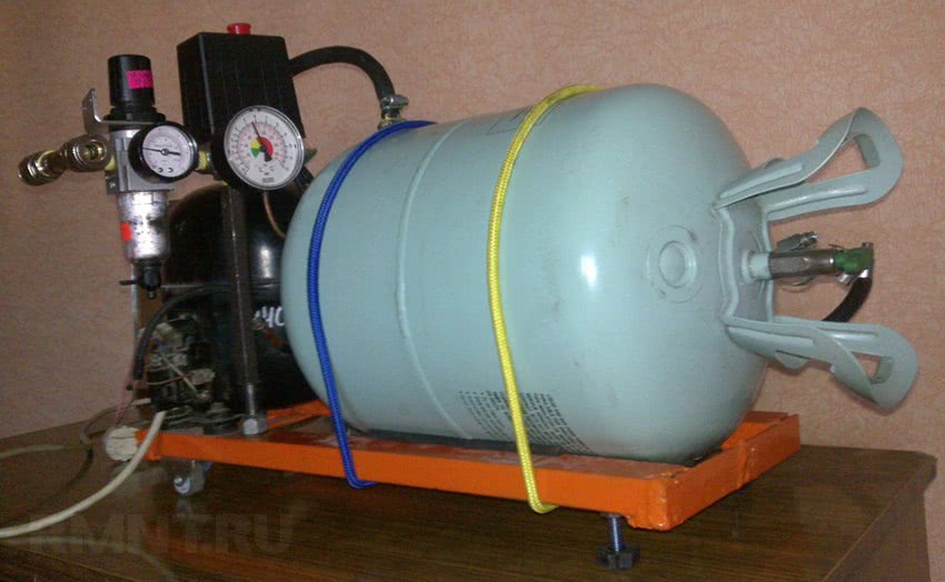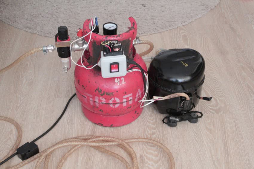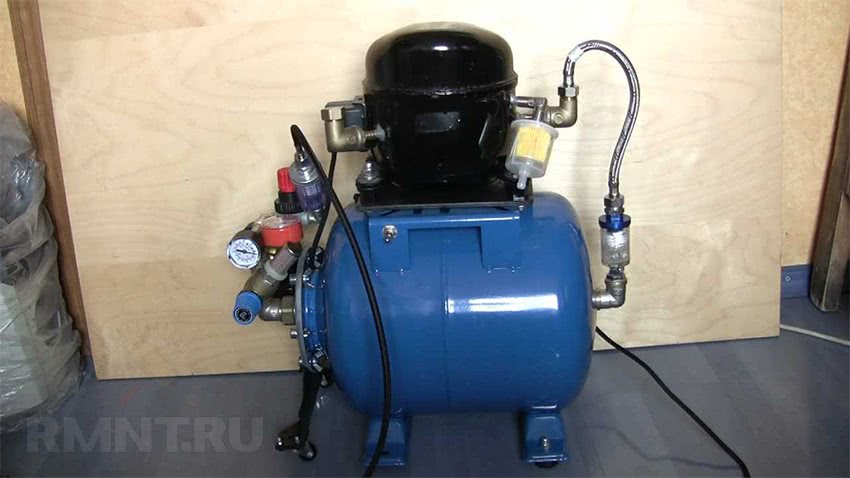 - Не уступающую профессиональным, можно создать модель изделия самостоятельно или использовать компрессор для гаража от холодильника.