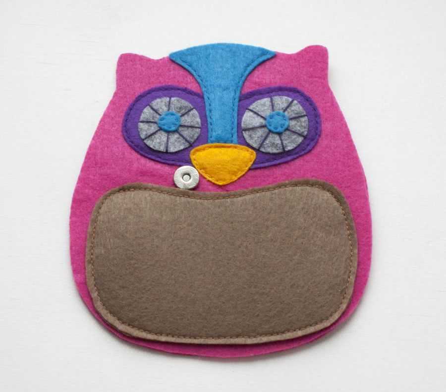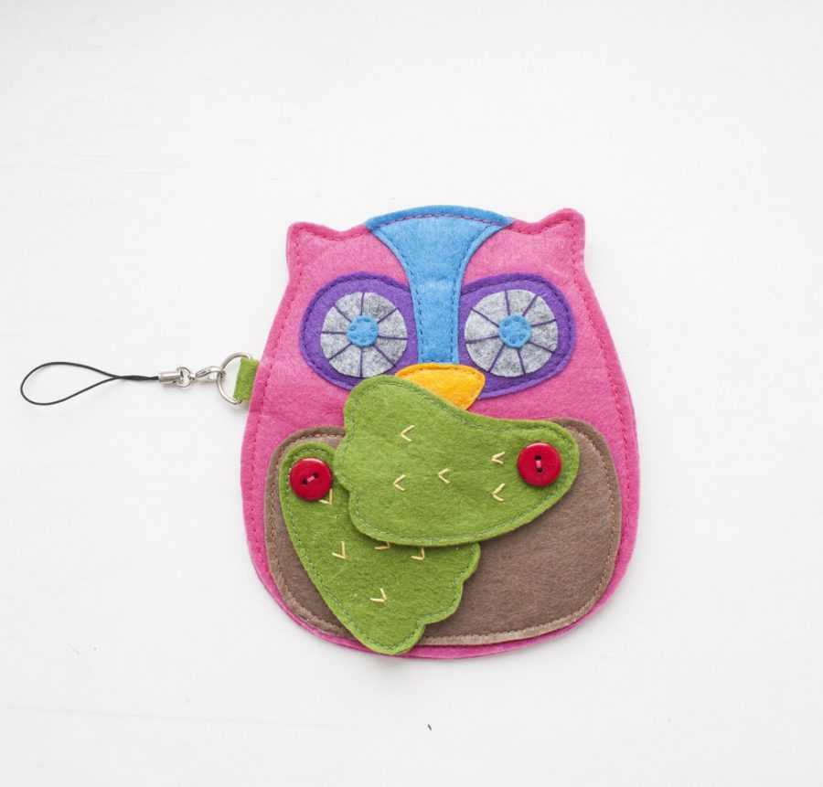 В верхней части кошелька вшивается застежка-молния. На ушке совы можно прикрепить небольшой карабин со шнурком, чтобы кошелек-сову можно было закрепить на поясе или рюкзаке ребенка.