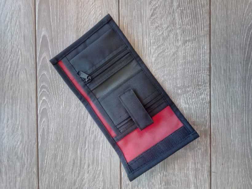 Сшить женский кошелек из трикотажа несложно. После выкройки деталей начинают работать с лицевой частью. Ее уплотняют хлопковой подкладкой, флизелином и внутренней деталью. Их соединяют, простегивают. Затем прикрепляют кнопку. Края закругляют, обрабатывают косой бейкой. Шьют внутренний карман на молнии. Для расширения кошелька пришивают боковые клапаны к внутреннему кармашку и основе.