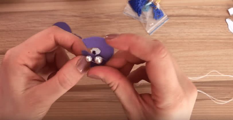 - детали (17 черных бусинок для носика и глазок, 24 голубых и 2 белых ‒ для глазок, 2 красных – для ротика);