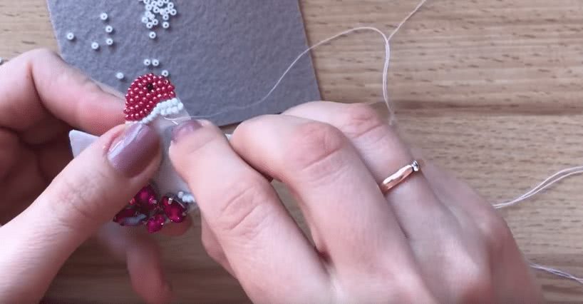 Ряд 2-5: снова по 2 бисеринки и зафиксировать .