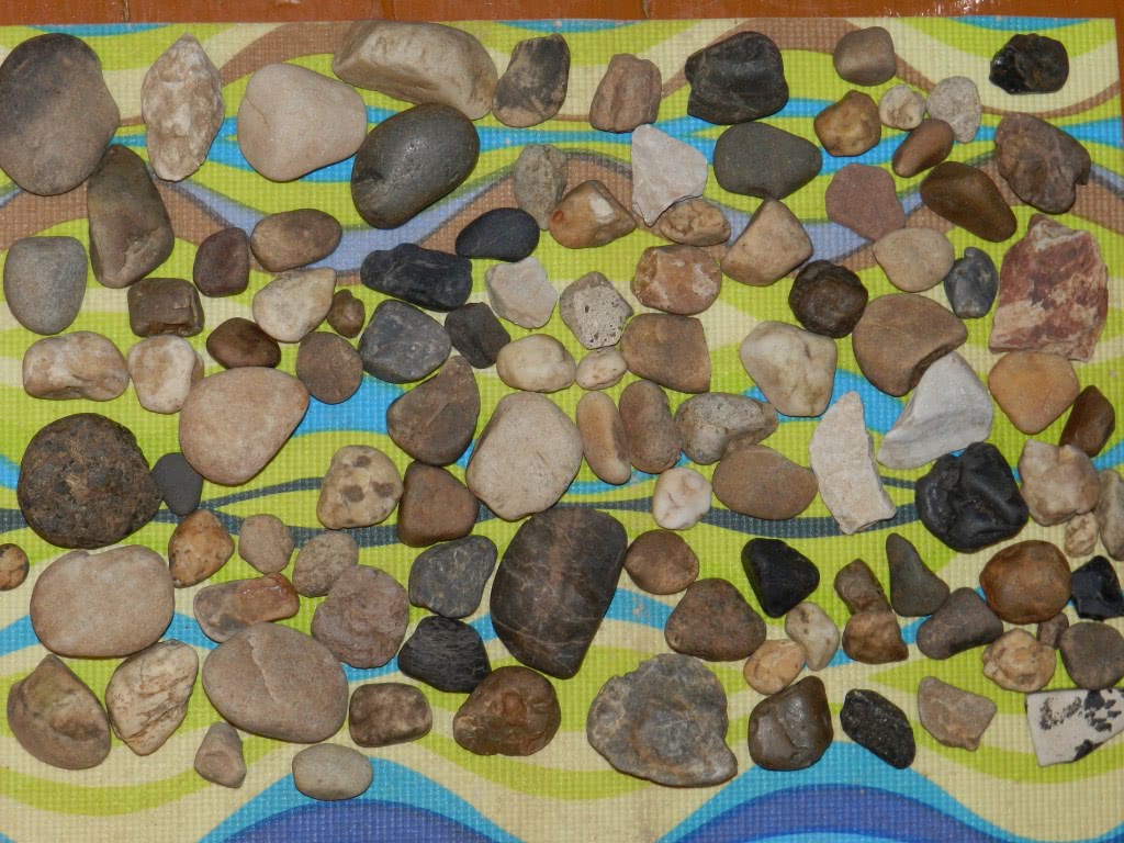 Для начала следует подготовить материалы. Первым делом нужно собрать камни, ведь мы собираемся делать массажный коврик с камнями. Камни я собрала на берегу ближайшей реки. Лучше выбирать камни одного размера, округлой формы без острых углов. Так поверхность будущего коврика получится более однородной.