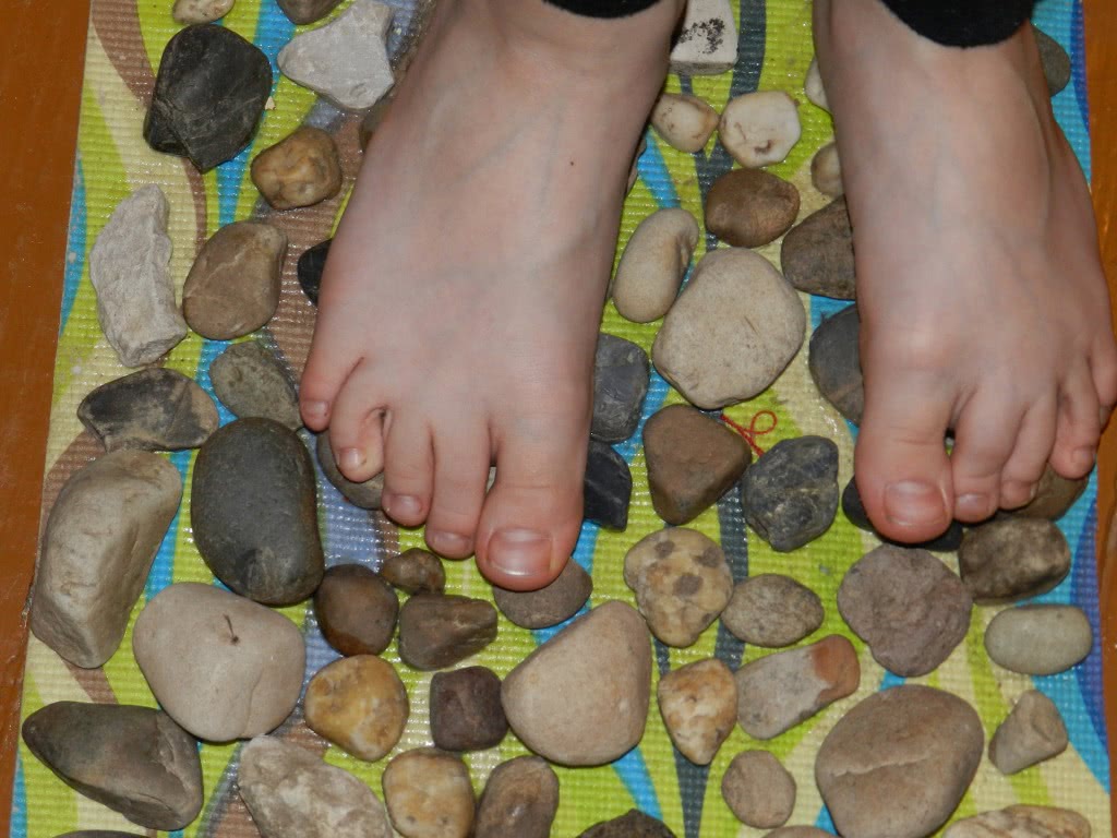 Когда клей просохнет, можно приступать непосредственно к массажу. Достаточно пяти минут в день интенсивного топтания на таком ковре, чтобы улучшить кровоток и снять напряжение с нижних конечностей. Не говоря уже о том, что на ступнях, как и на ладонях, множество точек, связанных с различными участками нашего тела. Стимулирование этих точек оказывает благотворное влияние на работу всего организма.