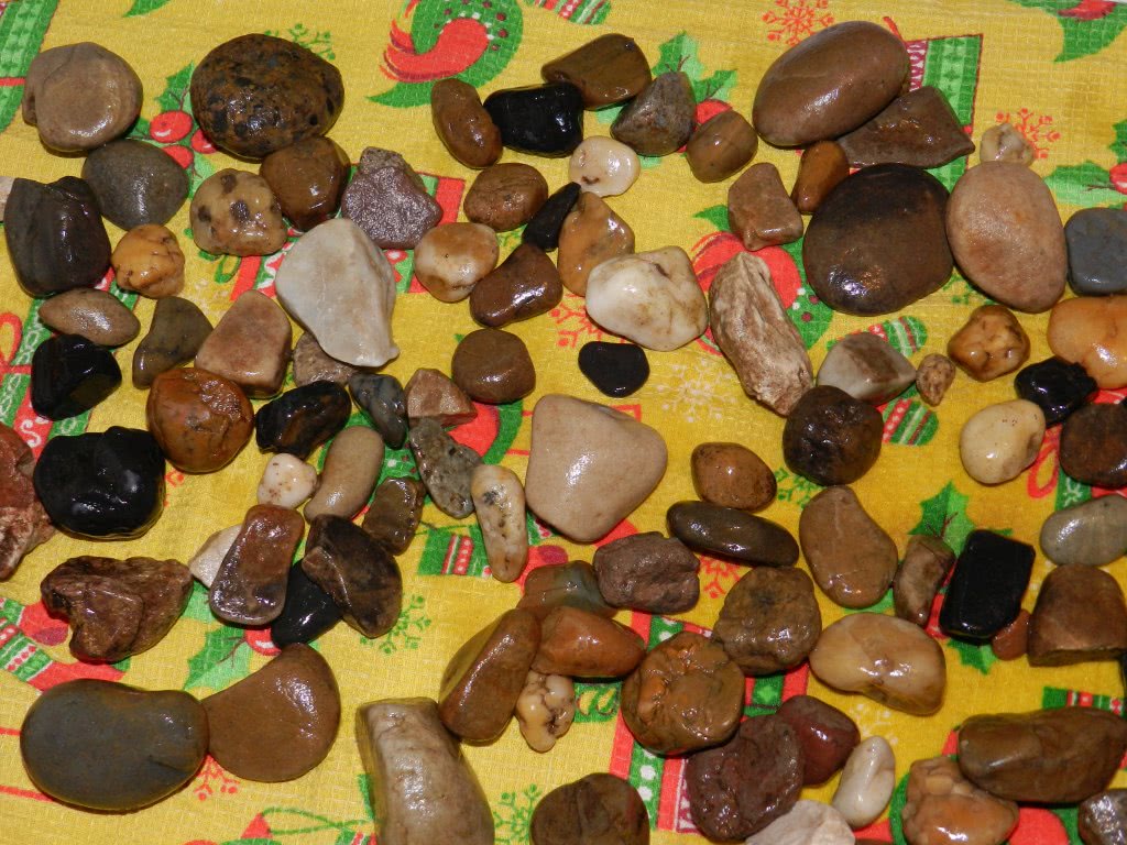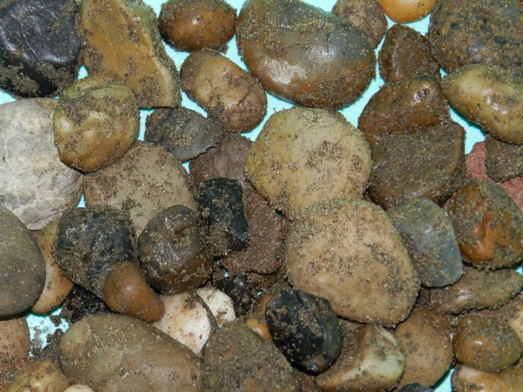 Итак, камни собраны. Теперь необходимо их очистить от песка и грязи. Можно даже замочить на несколько часов в растворе марганцовки или мыла, затем тщательно промыть их под проточной водой. Чистые камни выкладываем на полотенце, чтобы убрать лишнюю влагу, а после оставляем на сухой поверхности на сутки для просушки.