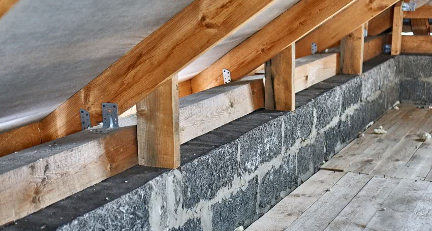 Теплоизолятор закрывается паробарьером (специальной мембраной). Материал защищает утеплитель и всю деревянную конструкцию от воздействия влаги.