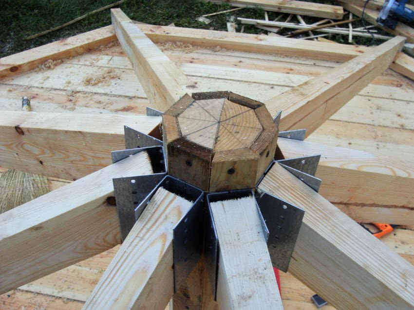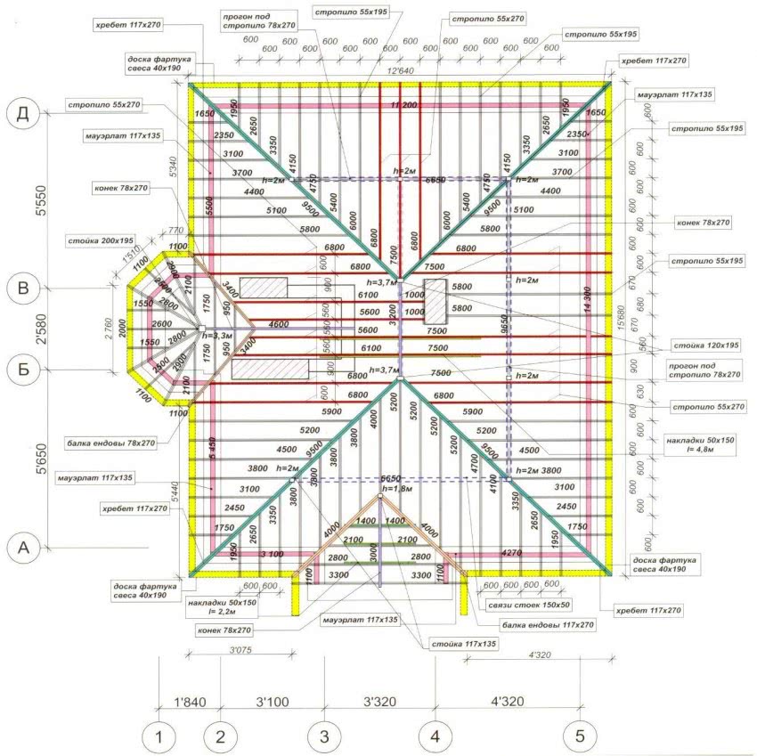 - Высчитываете углы наклона боковых и коньковых стропил.