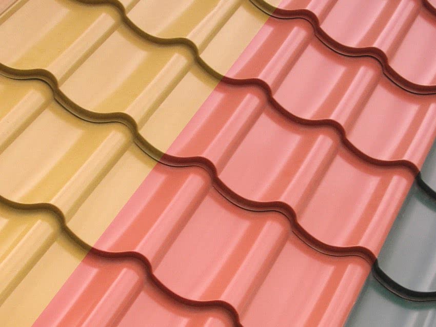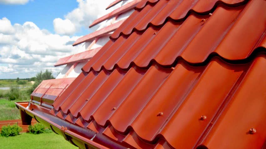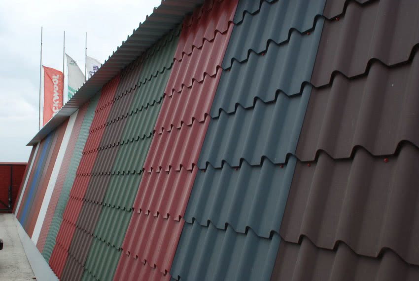 - Металлический профиль. Такой материал — практичный и недорогой вариант. Металлические листы легче шифера, к тому же цвет можно выбрать любой — отделка может быть и зеленая, и красная, и коричневая.
