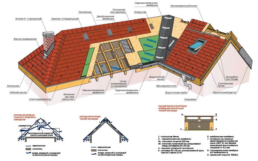 При возведении крыши учитывают тот факт, что в ее конструкции должны быть вентиляционные зазоры. Они будут профилактикой образования конденсата.