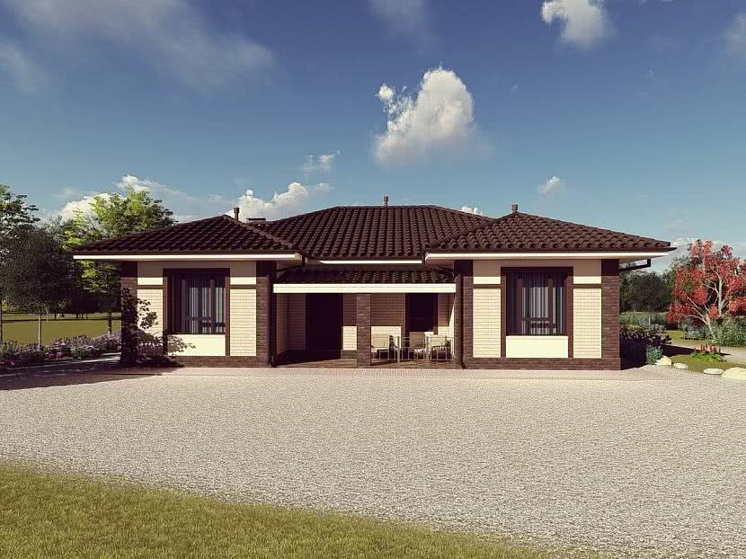 У одноэтажных красивых домов из кирпича есть множество особенностей, например, возможность четкого планирования свободного пространства.