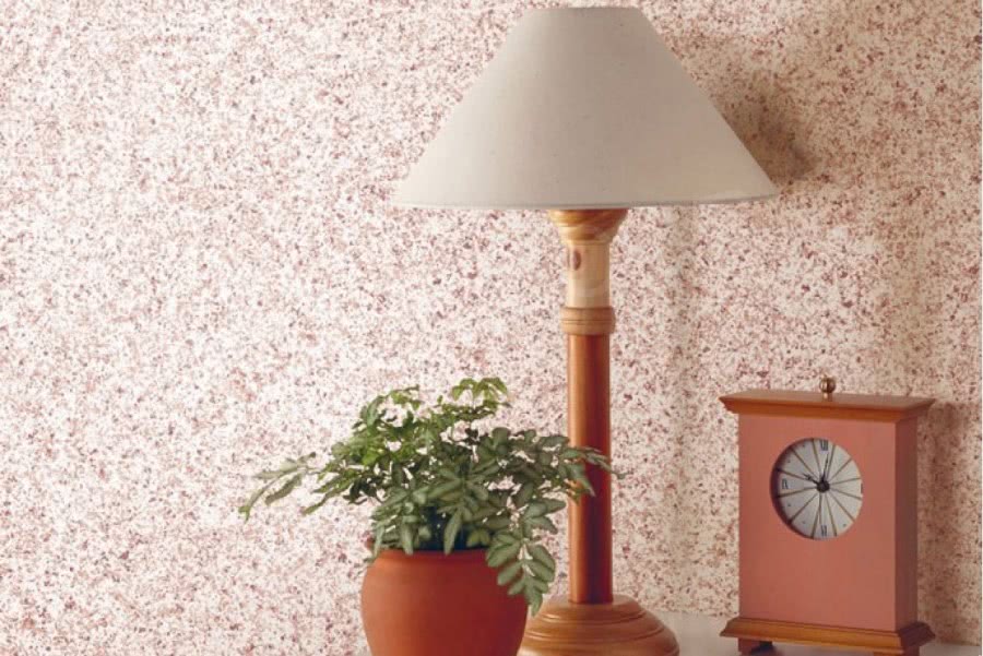 Мозаичные декоративные краски имитируют природные материалы. На поверхность стен их наносят с помощью краскопульта. В их состав входят нерастворимые цветные фракции.