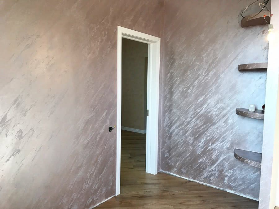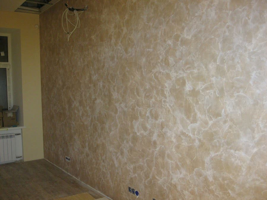Данная разновидность получила широкое распространение при проведении отделочных работ внутри помещения. В засохшем виде она имитирует рисунок оникса или мрамора. На первый взгляд ее трудно отличить от настоящих камней. Поверхность, обработанная венецианской штукатуркой, может быть глянцевой или матовой. При добавлении к ней различных колеров можно добиться эффекта имитации драгоценных камней. Лучше всего для этого подходят оттенки под перламутр, серебро и платину.