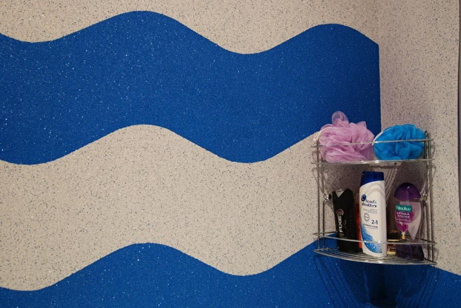 Для данной цели лучше выбирать синий, темно-бирюзовый или серый оттенки. Подобное оформление осуществляется с помощью нескольких тактик покраски. Выполняется в три этапа: окрашивание валиком; создание горизонтальных полос щеткой; создание вертикальных полос. Далее проводится повторное окрашивание тонким слоем краски валиком. Используют щетку с тонким ворсом. Ее периодически вытирают тканью, чтобы удалить излишки краски и не портить узор.