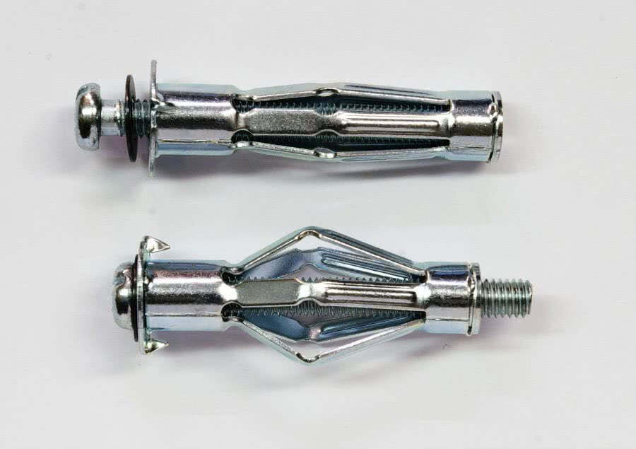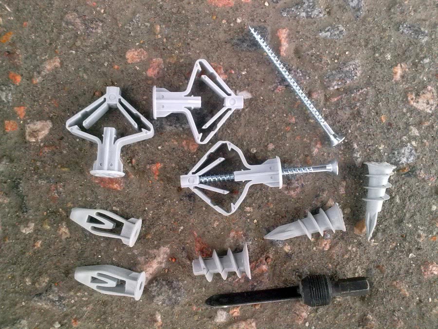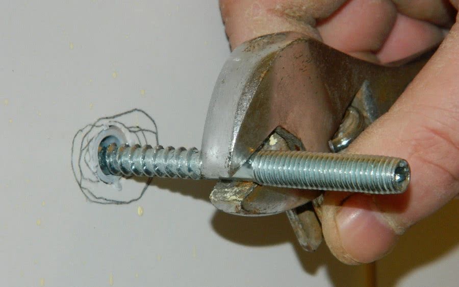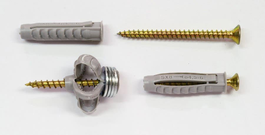 При монтаже крупных предметов мебели и техники до 10 кг поможет крепеж «бабочка» для гипсокартона. При вкручивании винта дюбель значительно расширяется за ГКЛ, что обеспечивает надежное крепление.