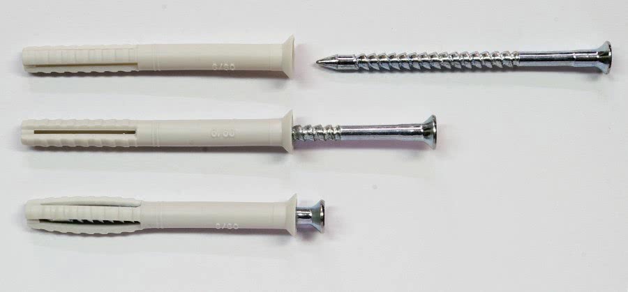 Дюбель-гвоздь используется для крепления элементов каркаса конструкции к бетонной или кирпичной стене. Оптимальный размер: диаметр 6 мм, длина 37 мм.