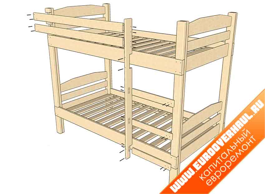 Конструкция двухъярусной детской кровати из мягкого дерева