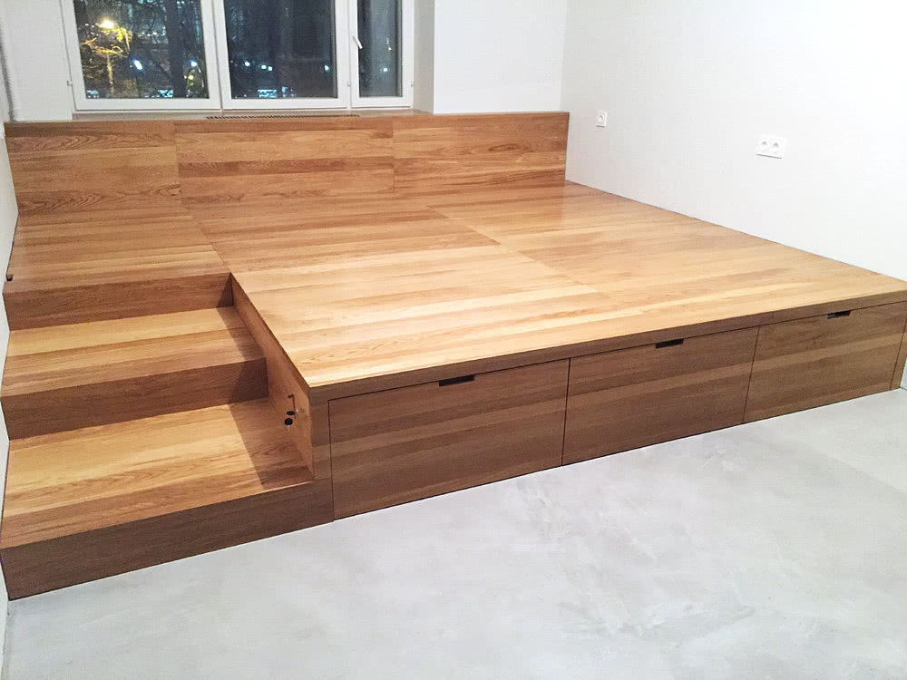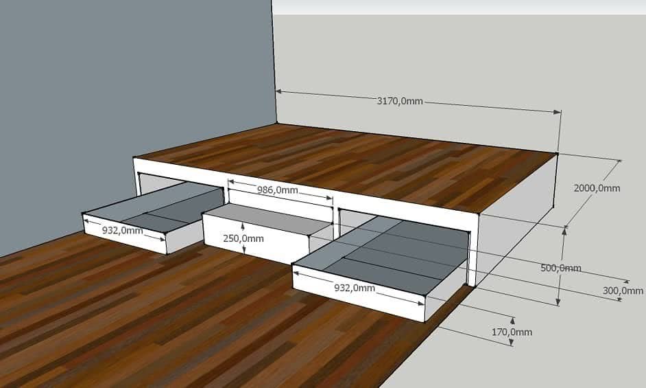 Как сделать подиумную кровать с ящиками?