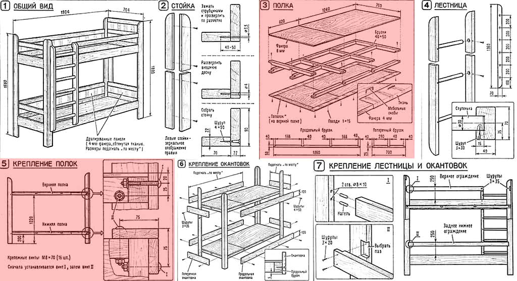 Результаты поиска вариантов самостоятельного изготовления двухъярусной кровати в рунете дают, надо сказать, вполне положительный результат – что касается детских кроватей. Пользователь найдет внятные указания, с чертежами и материальными ведомостями, как эту самую кровать сделать. Однако, присмотревшись, можно понять, что это еще не самые простые, дешевые и надежные варианты.