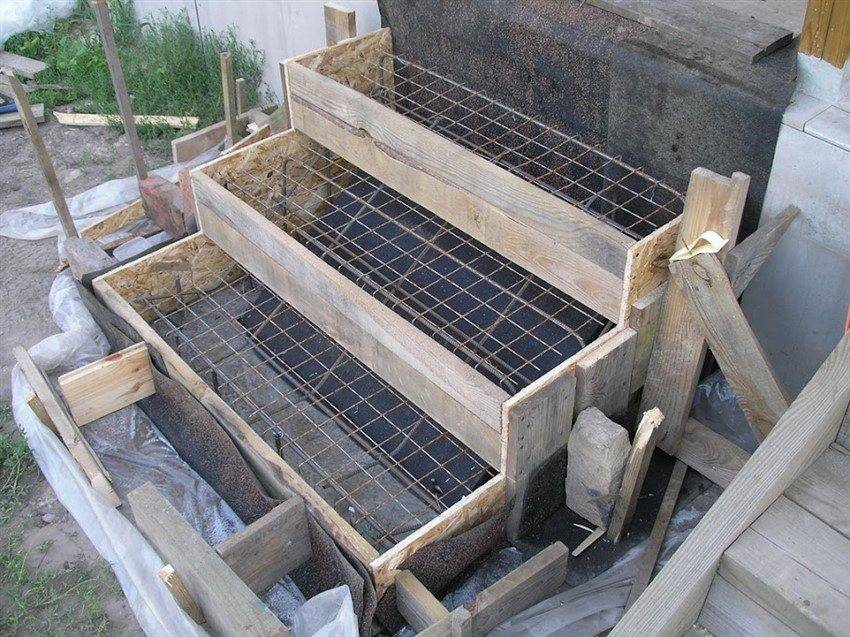 - необходимо сделать каркас из арматуры – это усилит всю конструкцию бетонного крыльца;