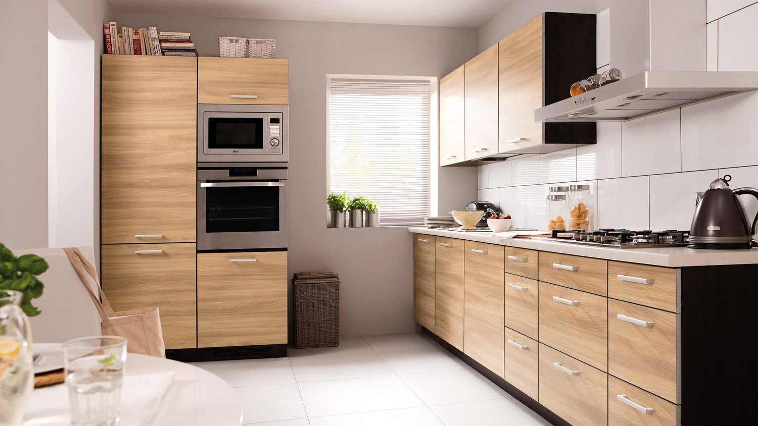 В первую очередь каждый элемент должен быть функциональным. Так, если кухня небольшая, стоит подумать о более компактном гарнитуре. Чтобы шкафчики с тумбами были достаточно вместительны, можно сконструировать угловые модели или предусмотреть большее количество полок, ящичков, различных скрытых систем хранения. Также необходимо предусмотреть ниши для бытовой техники.