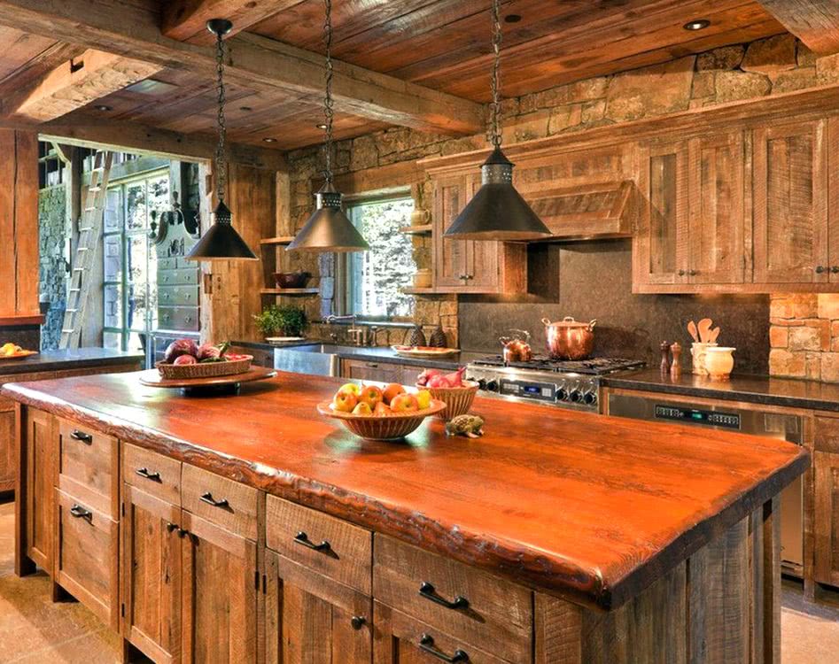 Материал из массива дерева считается универсальным, так как может дополнять различные стили кухни.