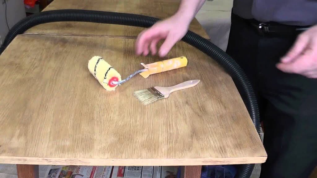 При собственноручном выполнении обеденного стола рекомендуется заранее защитить все конструктивные элементы — покрыть их специальными красящими составами либо морилкой. Смесь акриловой краски и эпоксидного лака следует хранить в герметичной емкости.