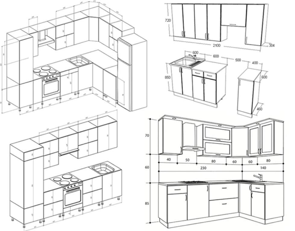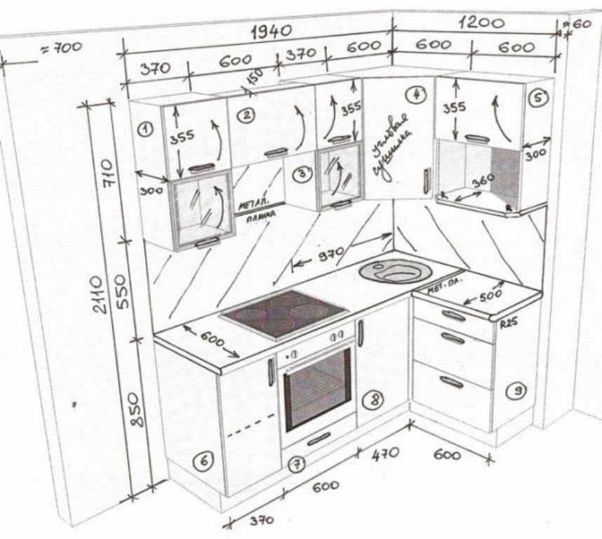Чертежи и схемы кухни с размерами