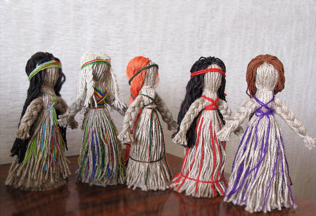 Ляльки из ниток, как и мотанки, делаются без использования ножниц или иголок непосредственно в момент работы над ними. Обо всем, что нужно отрезать, пришить или вышить, придется позаботиться заранее.