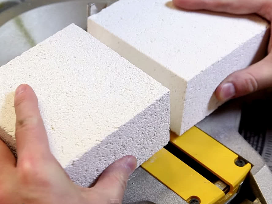Сначала нужно разрезать кирпич на две одинаковые половины (если вы хотите сделать горн больше размером, в конце статьи будут заметки для этого). Для этого я использовал обычную зуборезную пилу 25 см, с полотном по дереву. С огнеупорным кирпичом легко работать и он хорошо режется. Не забывайте использовать противопылевой респиратор, как и при резке любых других материалов в вашей мастерской.