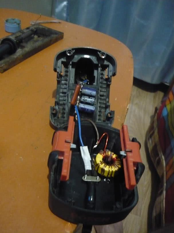 длинной, какой был в наличии. Из батареи удалил все аккумуляторные элементы и вмонтировал LC-фильтр. Теперь,