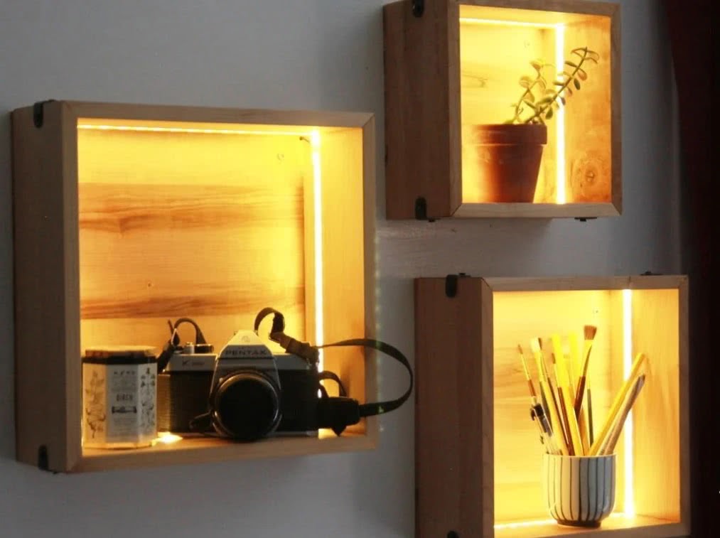 Важно поменять в них лампочки, использовать лучше одинаковые, чтобы не мучиться с настройками баланса белого в процессе. По бокам подойдут невысокие светильники, их нужно направить ровно в стену, на освещение центра куба