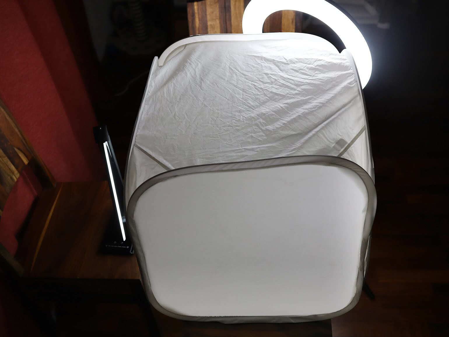 Здесь важно, чтобы бокс был больше снимаемого предмета минимум в два раза. Впрочем, если Вы ограничены в средствах, то можно не приобретать фотобокс, а сделать его собственными руками из подручных материалов