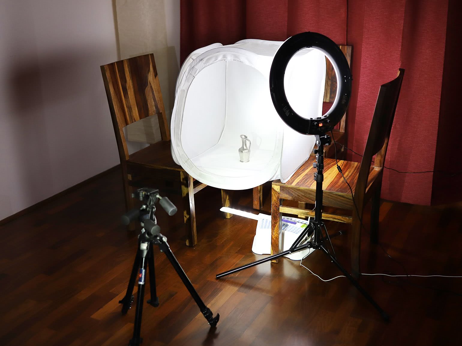 Никаких особых секретов съемки в лайт боксах для фотографирования нет. Необходимо поставить конструкцию на стол, настроить источники света (они должны светить ярко, но не пересвечивать). Желательно использовать штатив, чтобы снимки были сделаны с одинаковой высоты.