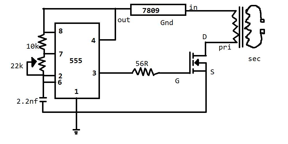 Метод 1 использует таймер 555 для включения и выключения мосфета. В нём используется меньше компонентов и его легче собрать.