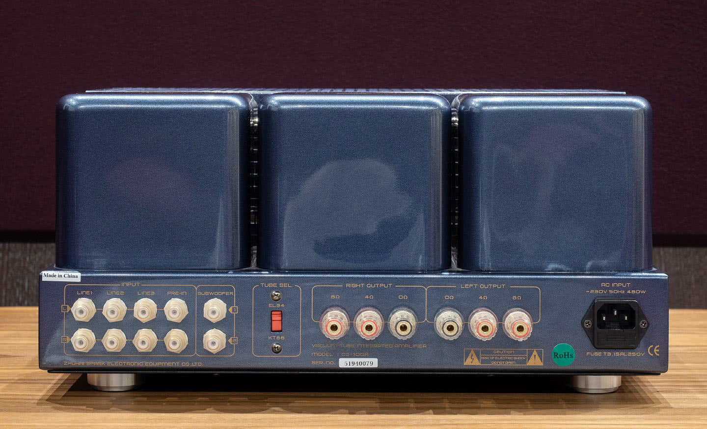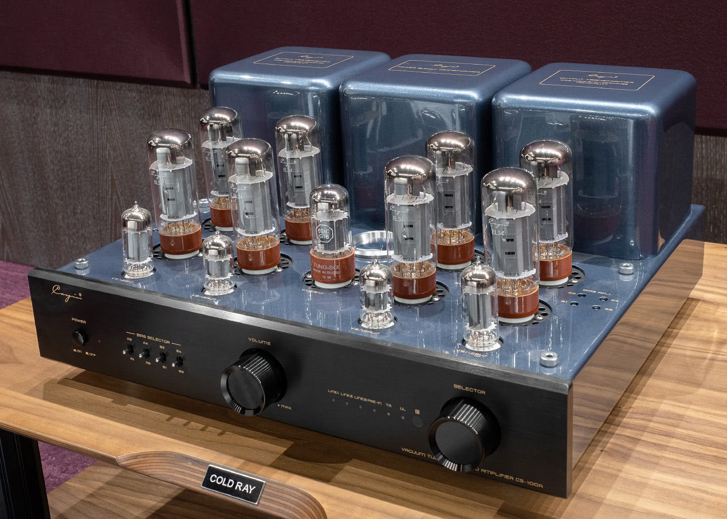 Это существенно сократило выбор кандидатов, однако, подходящий вариант был найден. Им стал Cayin CS-100A — аппарат, буквально созданный для разного рода экспериментов. Его конструкция допускает использование выходных ламп двух типов: тетродов KT88 и пентодов EL34. При этом есть возможность выбора между триодным и ультралинейным режимом с выходной мощностью 50 или 80 Вт на канал, соответственно. При этом схемотехника усилителя в обоих случаях двухтактная, и работает он в классе АВ.