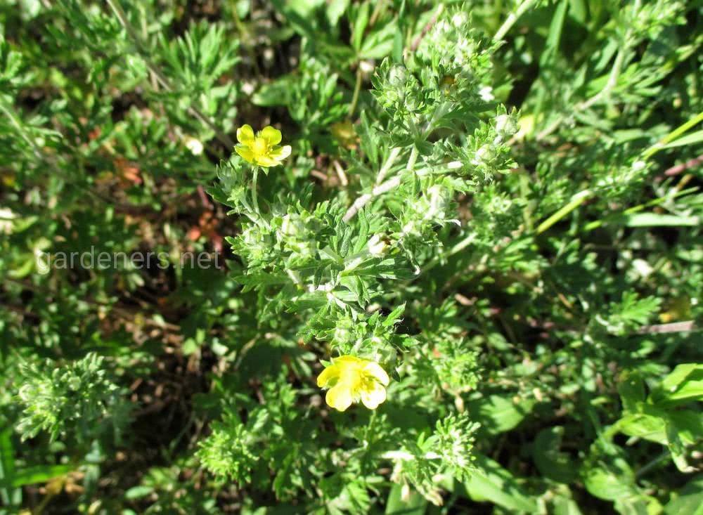 Многолетнее травянистое растение под названием лапчатка серебристая высоким ростом похвастаться не может. Минимальная высота лапчатки составляет 0,1 метра, а максимальная — 0,3 метра. Можно смело сказать, что эта разновидность лапчатки самая распространенная среди всех участников нашего списка. В культуре, правда, она встречается редко по причине низкой эстетической ценности, однако в народной медицине ее используют более чем активно. В частности, в качестве бактерицидного препарата, а также в качестве ингредиента для фитопрепаратов, предназначенных для лечения заболеваний печени и органов ЖКТ.