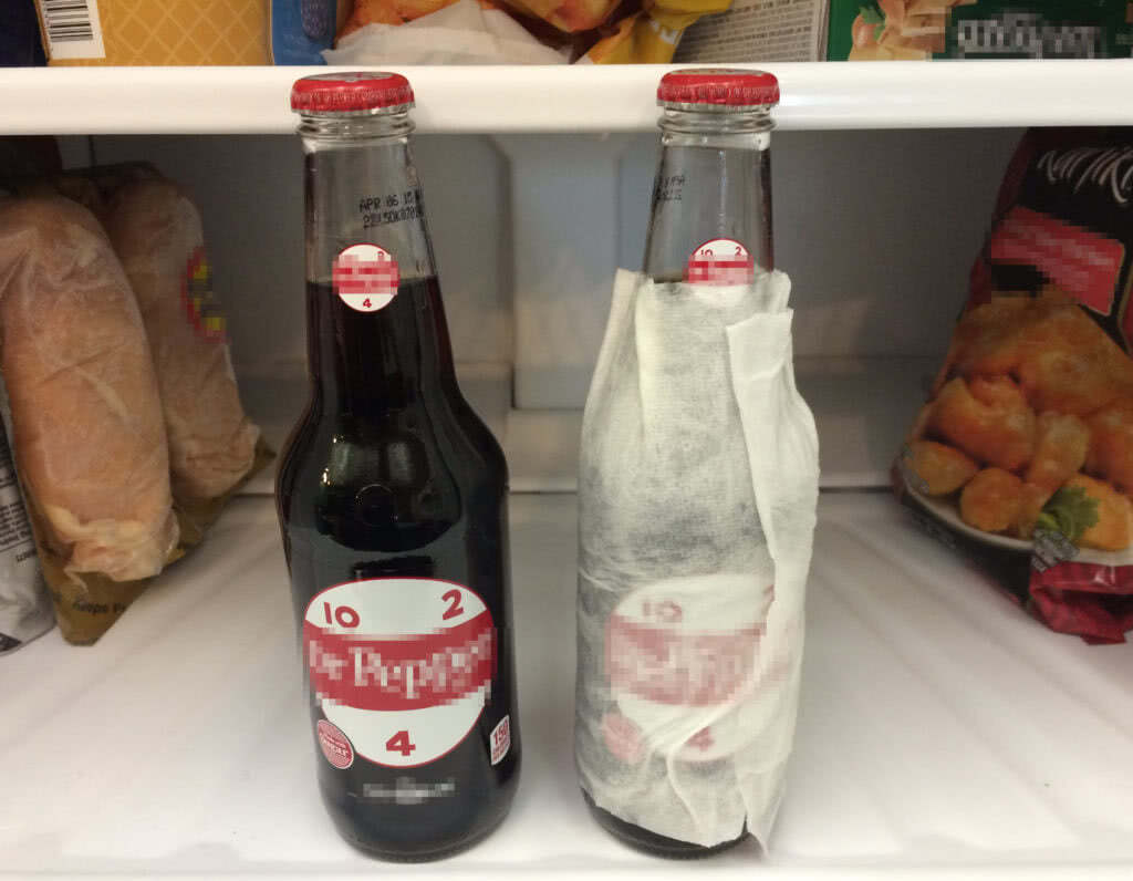 Охлаждение напитков. Чтобы быстрее охладить напиток в холодильнике до нужной температуры, достаточно обмотать бутылку влажной салфеткой или полотенцем.