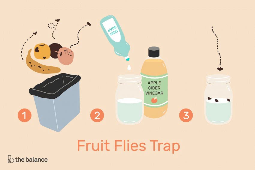 Можно сделать ловушку из яблочного уксуса. В банку налить уксус и закрыть ее крышкой с небольшими отверстиями. Испарения привлекут мух, но попавшие в ловушку насекомые еже не смогут из нее выбраться.