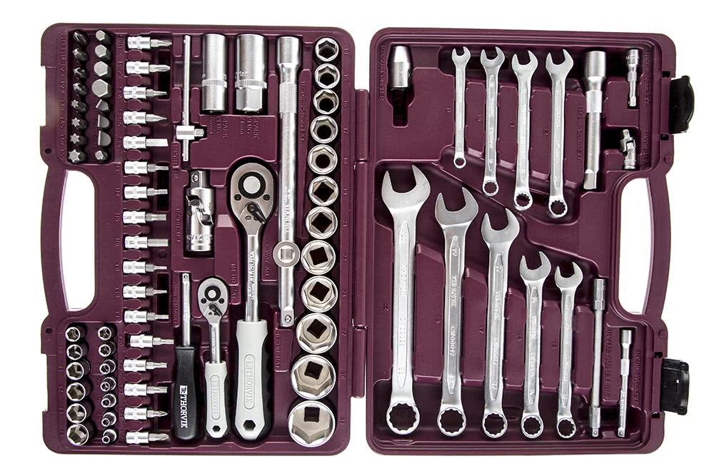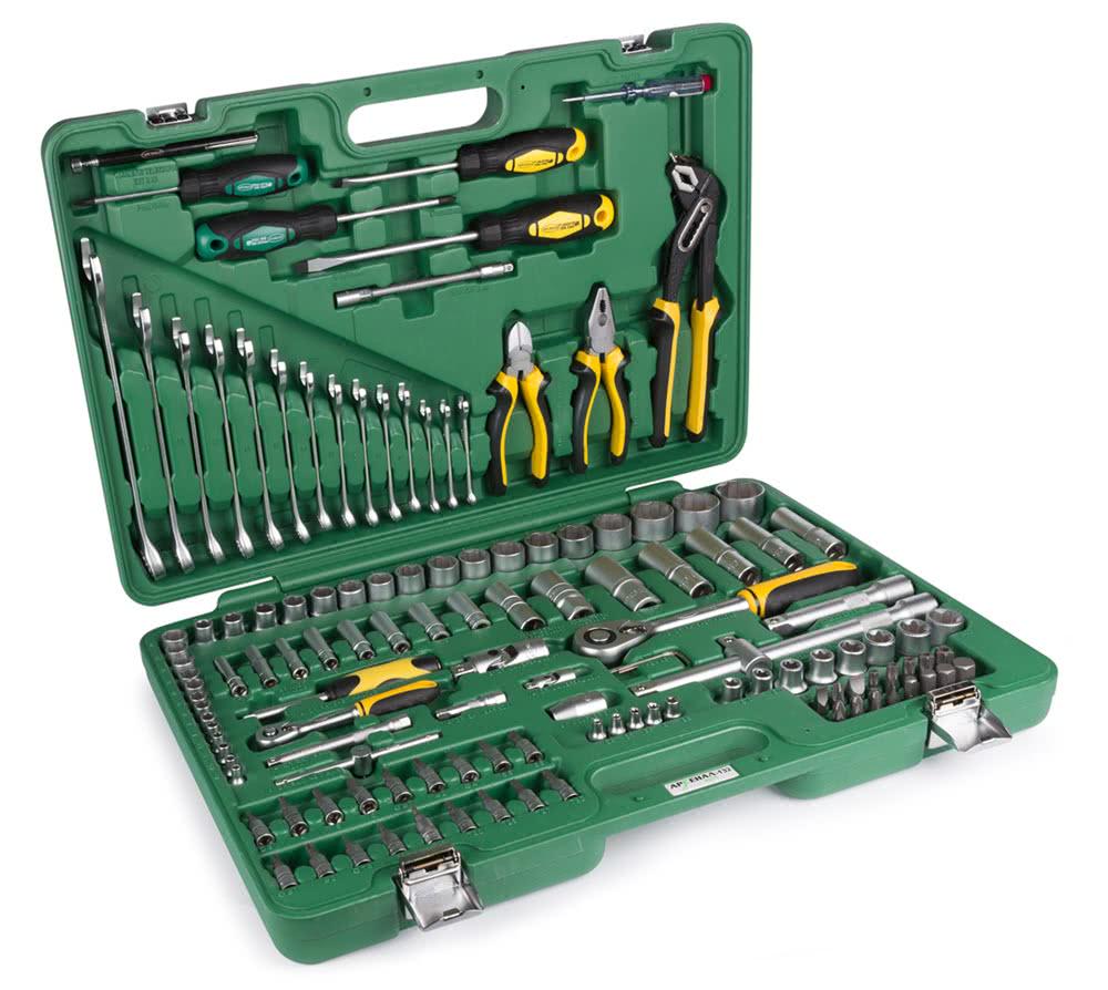 Комплект, состоящий из самых необходимых инструментов. Для надежного и долговечного хранения деталей они поставляются в кейсе с прочными защелками. Внутри 148 предметов, изготовленных из хром ванадиевой стали.
