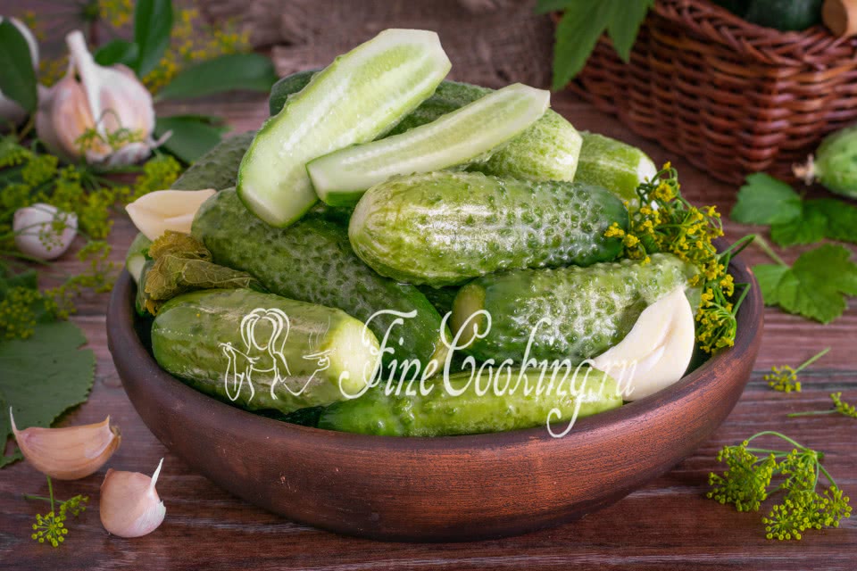 Малосольные огурцы с чесноком и зеленью быстрого приготовления