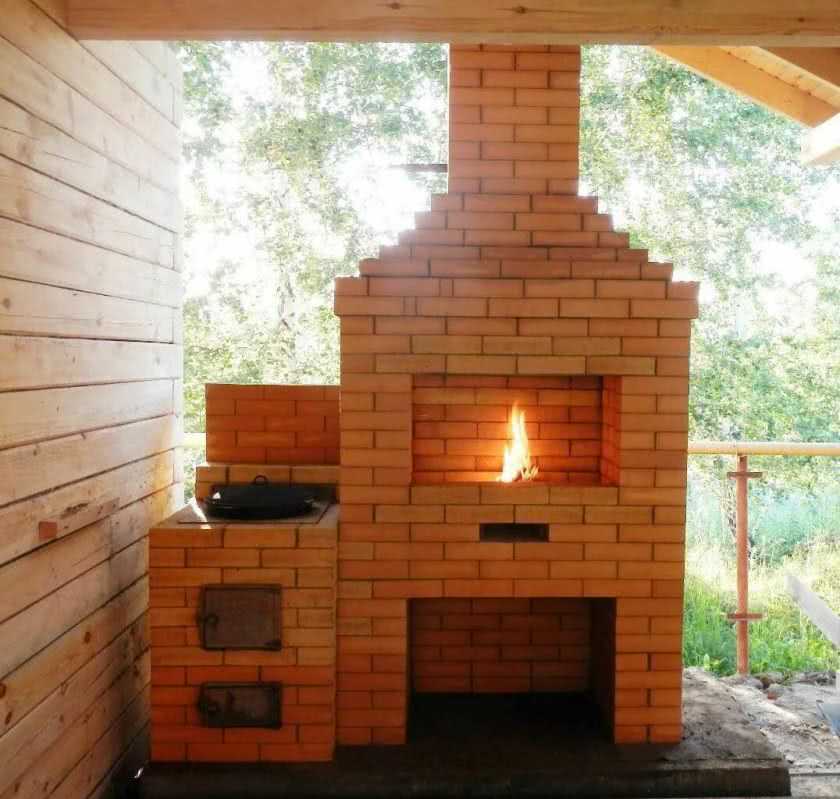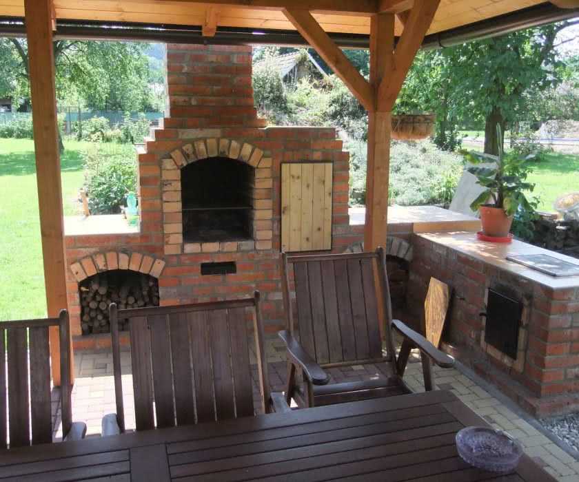 Внимание! Описанная конструкция барбекю подразумевает ее установку в качестве одной из стенок летней кухни или беседки, либо под навесом